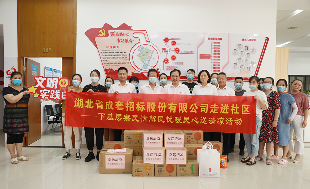 為扎實(shí)開展省屬企業(yè)黨員干部下基層察民情解民憂暖民心實(shí)踐活動(dòng),落實(shí)黨員干部“雙報(bào)到雙報(bào)告”工作,成套公司黨委迅速組織,由黨委書記黃澤旺帶隊(duì),于7月26日下午,到水果湖街姚家?guī)X社區(qū)開展了“走進(jìn)社區(qū)送送清涼”活動(dòng)。